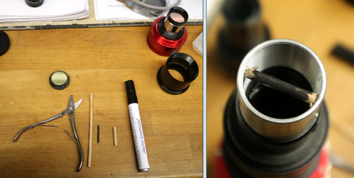 Abbildung mit einem Feld von wenigen Bogenminuten aus. - Justiert wurde
