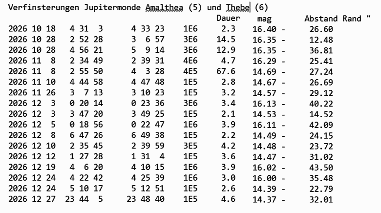 Jupitermondbedeckungen und Verfinsterungen geben. Eine Liste der