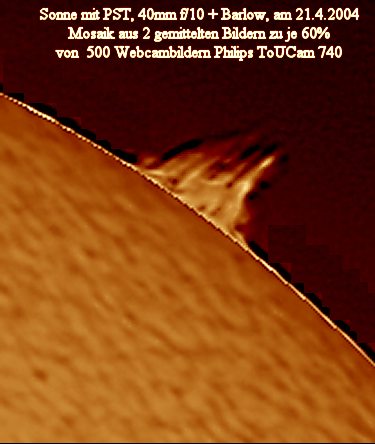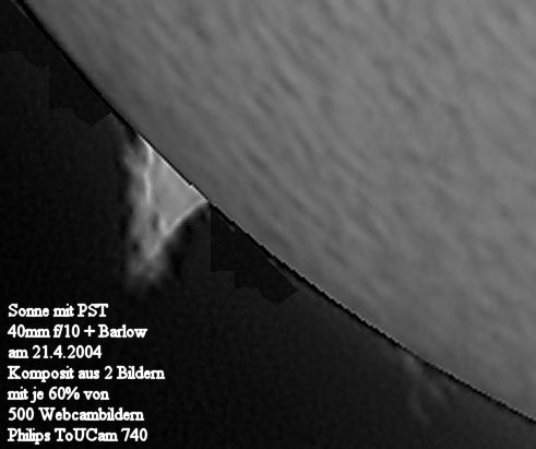Dafür waren am Rand ein paar kleine aber feine Protuberanzen zu sehen.