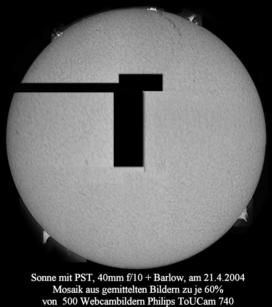 Am 21.4. ist erneut eine Bildserie mit dem PST entstanden. Diesmal zeigte die Sonnenoberfläche