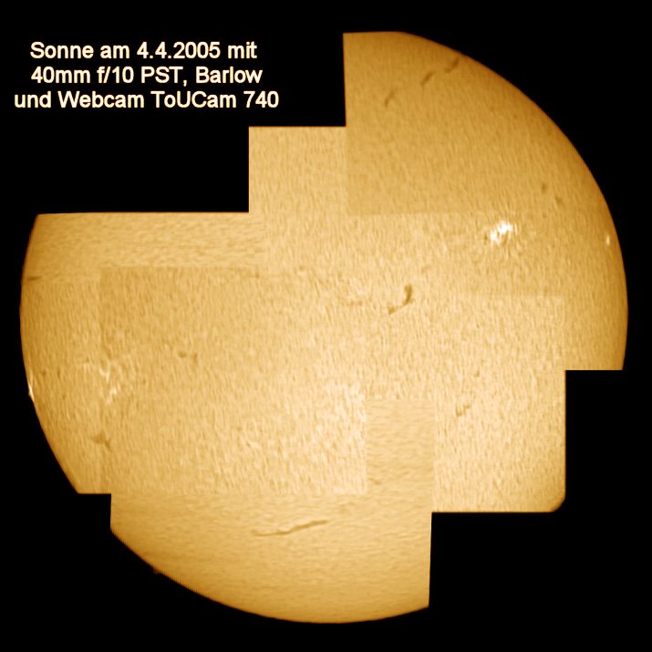Am 4.4.2005 gab es einige Tests mit einem 40mm f/10
