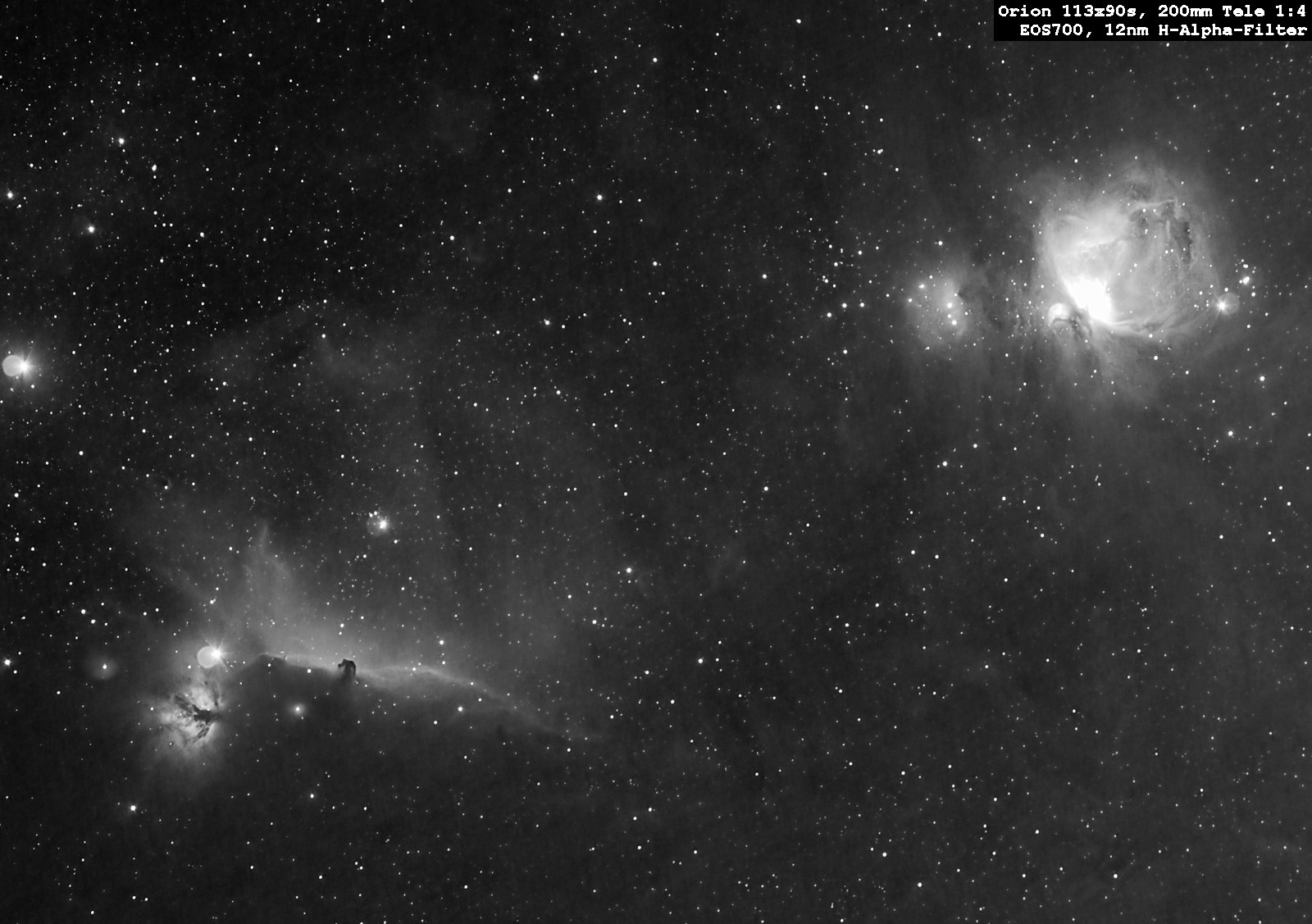 200mm passen auch der Pferdekopf und der Flammennebel mit ins Bildfeld.
