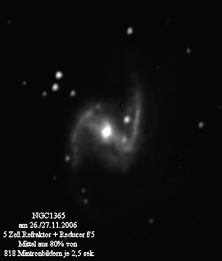 Besser gelungen ist die Aufnahme der berühmte Balkenspirale NGC1365.
