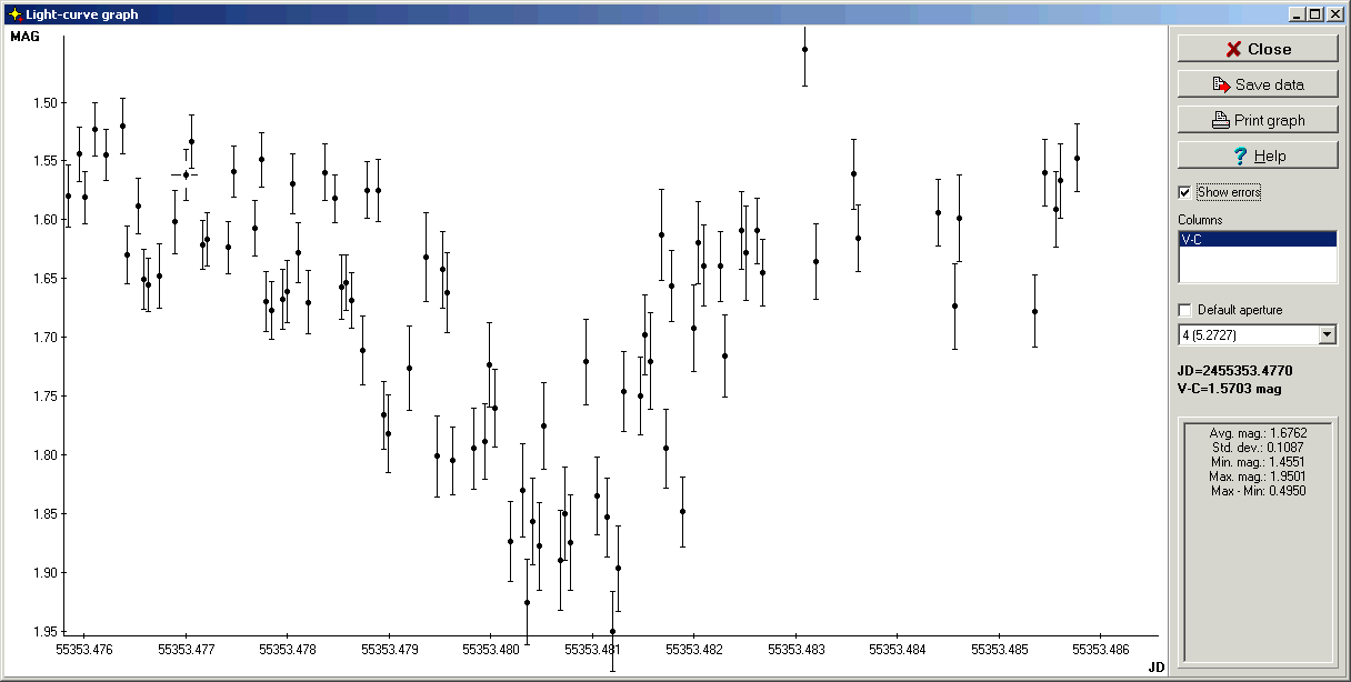 Auch der vorhergesagte Lichtabfall von einer Drittel Magnitude, ließ sich in den Daten gut wiederfinden.