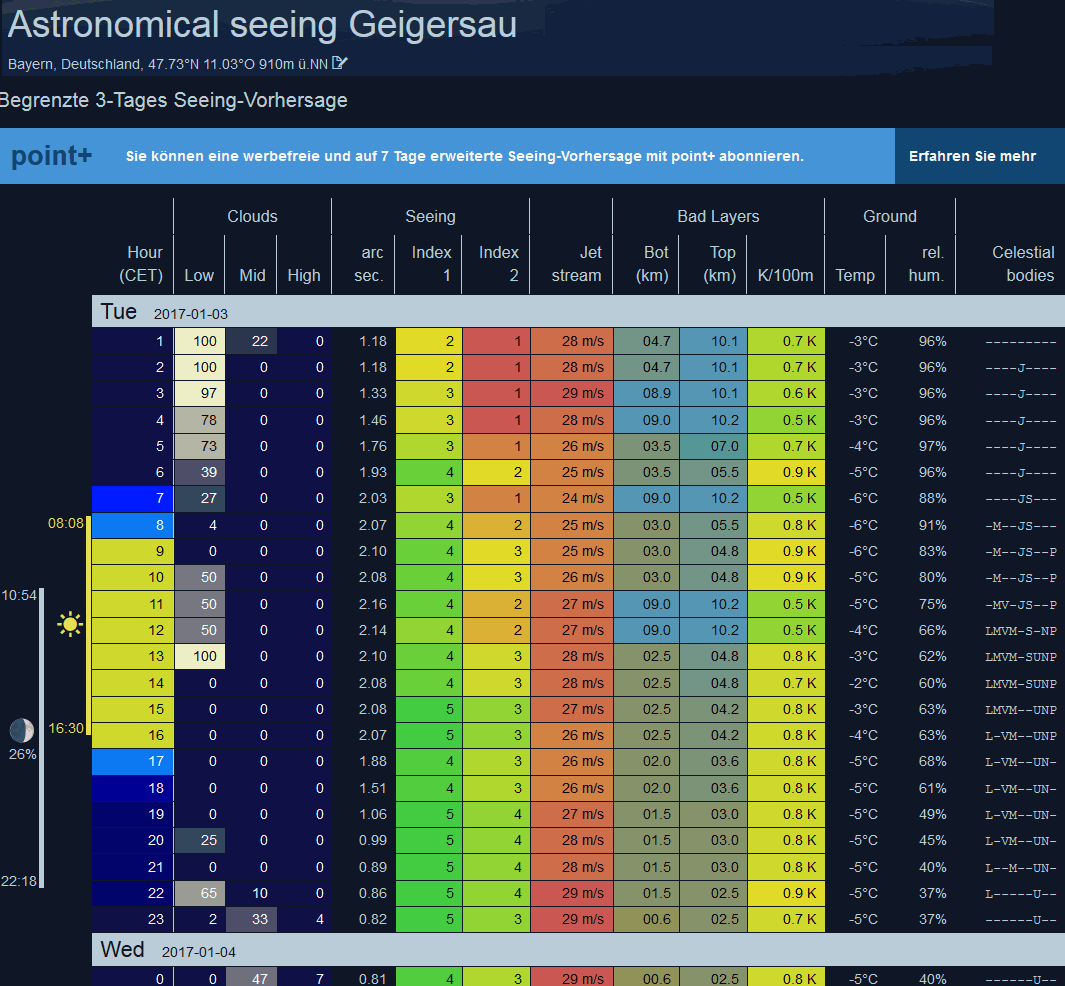 Dort gab es ab 19:00 MEZ einzelne Wolkenschleier, nach 20:05 zog es