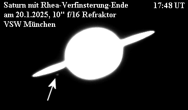Am 20.1.26 war das Finsternis-Ende des zweithellsten Saturnmondes Rhea
