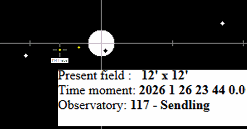 Abbildung mit einem Feld von wenigen Bogenminuten aus. - Justiert wurde