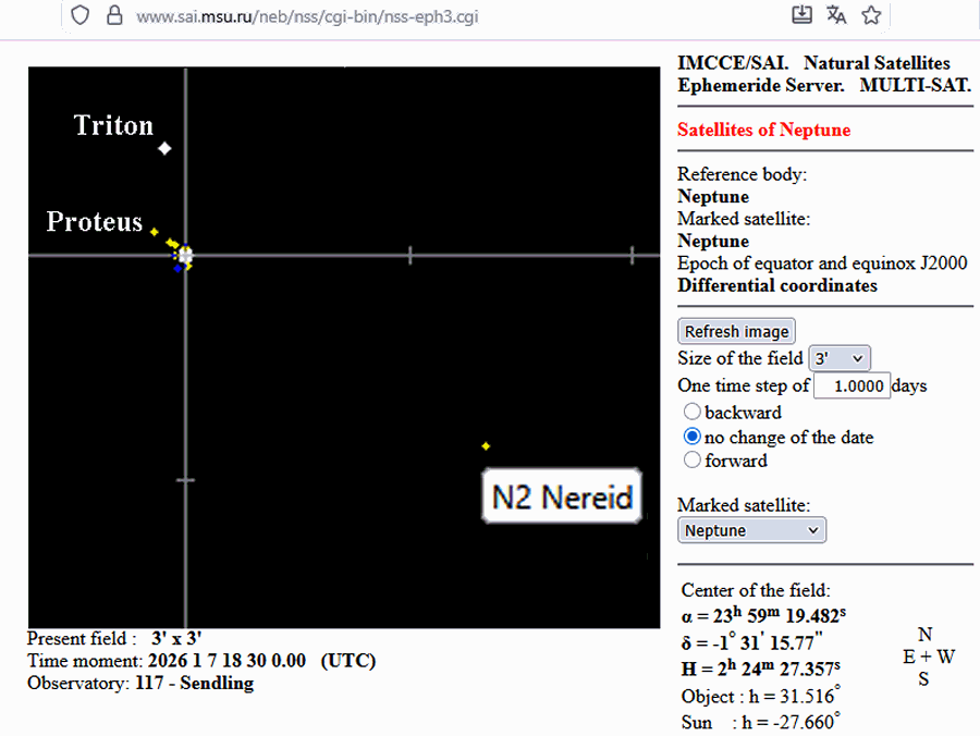 Proteus ist bei maximaler Elongation 4,8 Neptunradien vom
