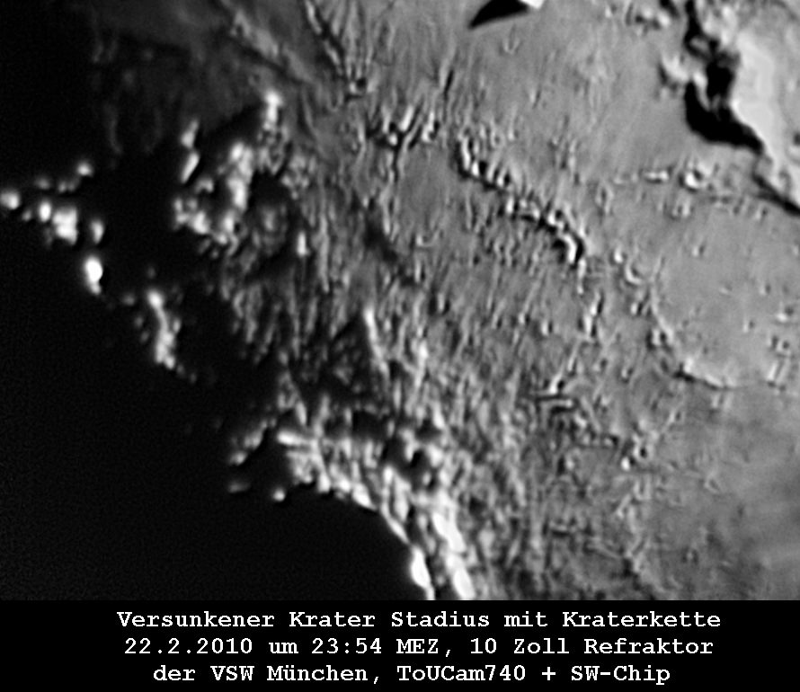erzeugt auf dem Kraterboden rasch wechselnde Lichtfiguren