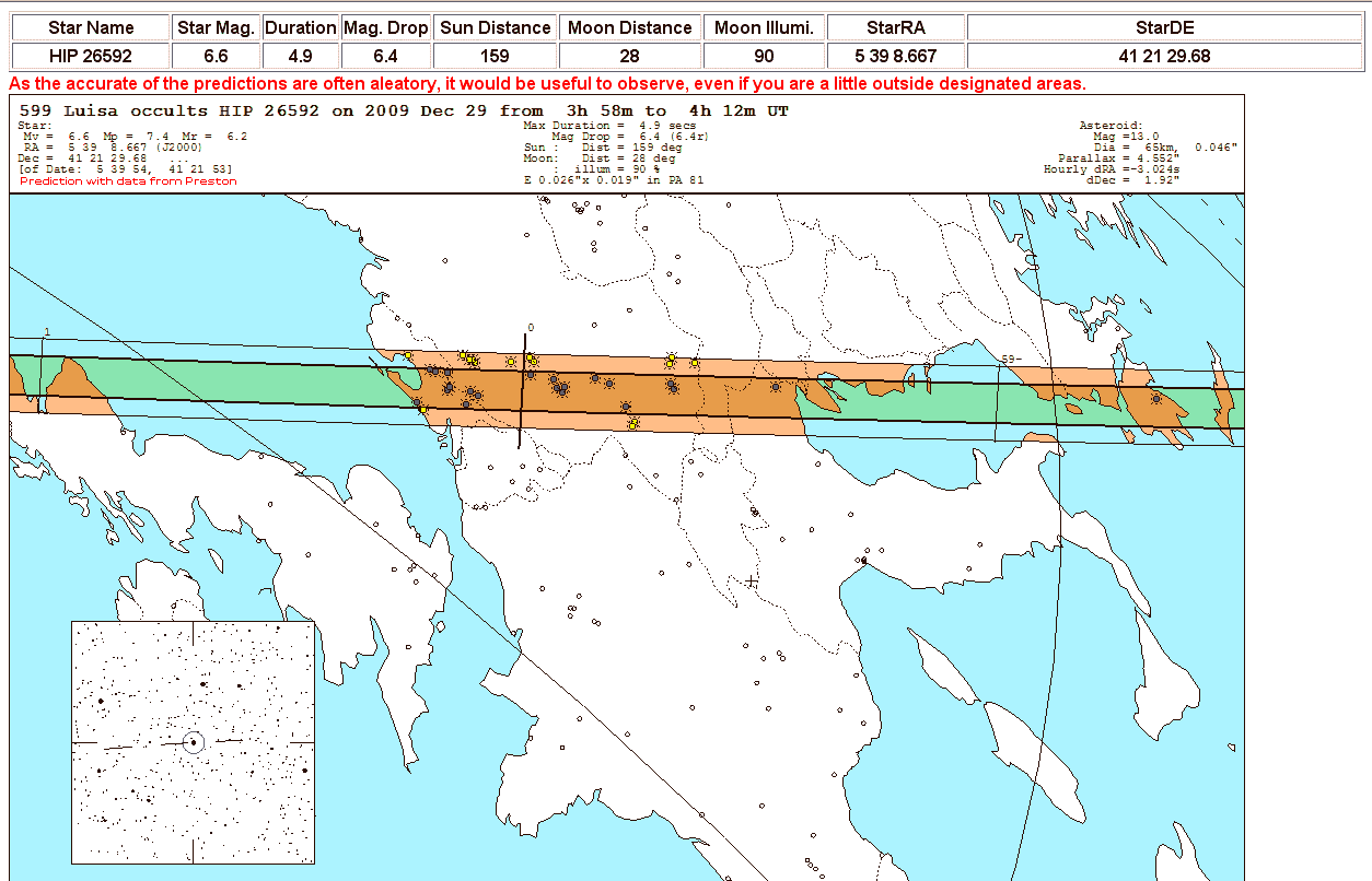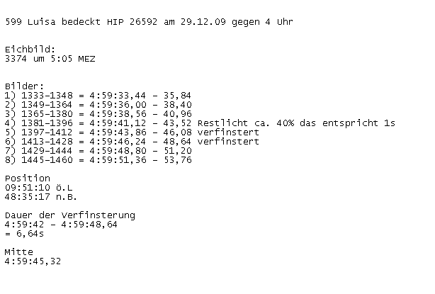 Am 29.12.09 sollte 599 Luisa HIP 26592 verfinstern. Eine dauer von 4,9 sek war