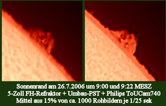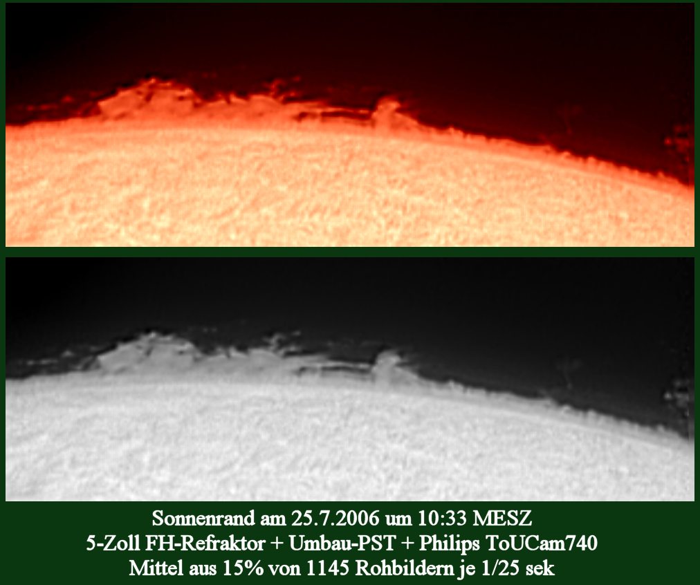 Am 25.7.2006 entstanden Sonnenaufnahmen mit einem 5-Zoll-FH-Refraktor
