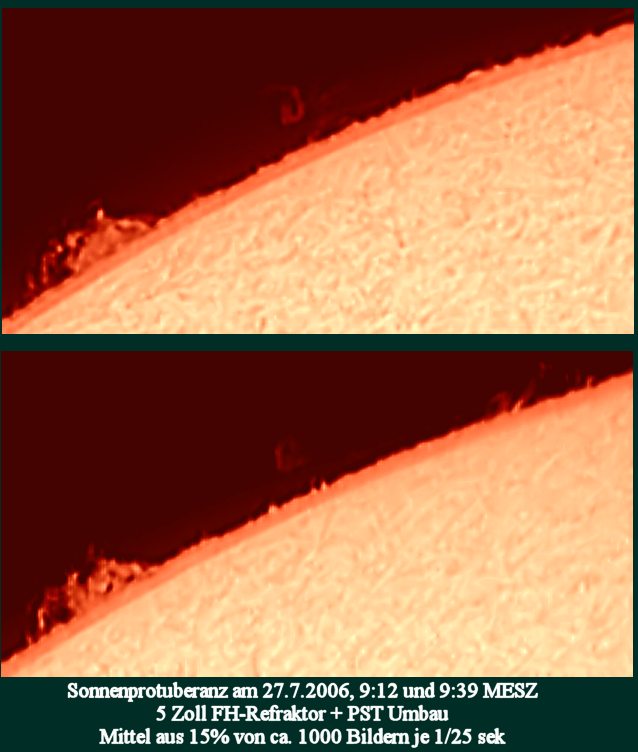 und PST-Umbau. Die an diesem Tag sichtbare Protuberanz wirkte eher statisch.