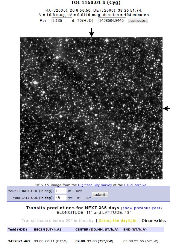 TOI 1168.01 ist ein 10,8 mag Stern der im Rahmen der TESS/PLATO