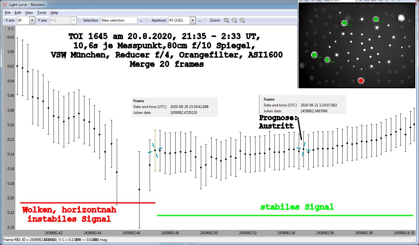 Für den 20./21.8.2020 war ein Transit vorhergesagt der von