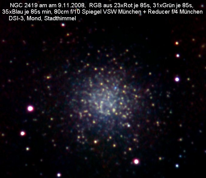 NGC2419, Kugelsternhaufen, Durchmesser ca. 4', Helligkeit 10.4 mag