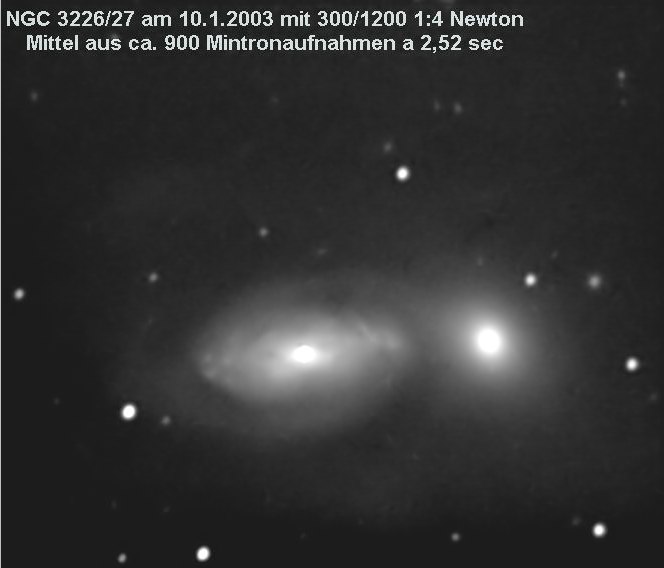Interessant ist auch der kleine diffuse Fleck rechts oberhalb von NGC3226.