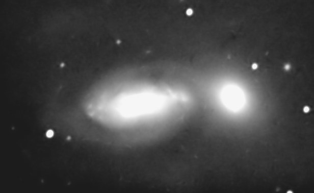 Dieses schöne Beispiel von 2 wechselwirkenden Galaxien befindet sich