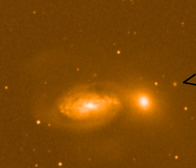 vermutet, dass es sich dabei um eine begleitende Zwerggalaxie handelt.