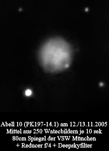 Abell10, Durchmesser ca. 34´´, Helligkeit 12,7 mag