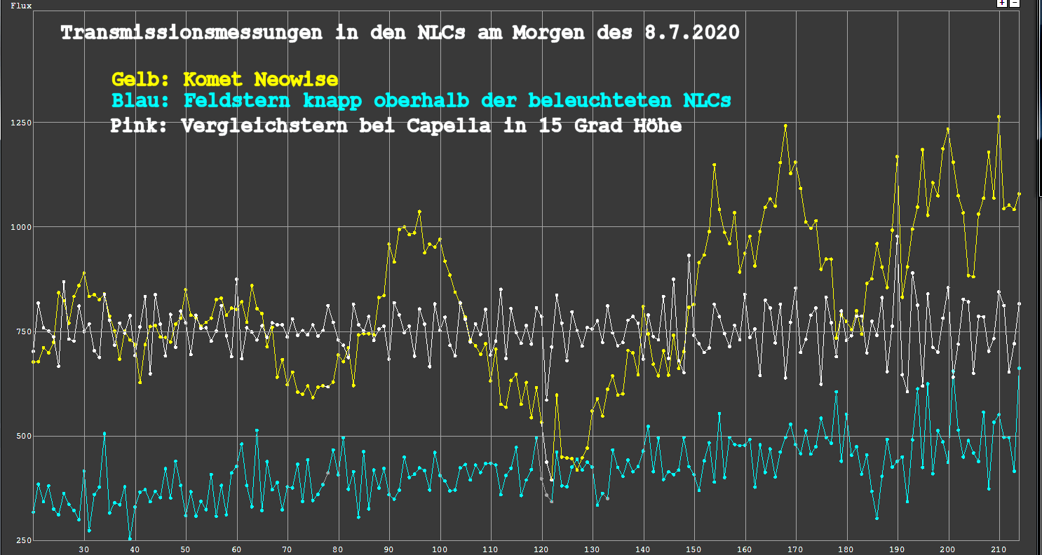 in den beleuchteten NLCs stand war dies anhand des Kometen selbst nicht