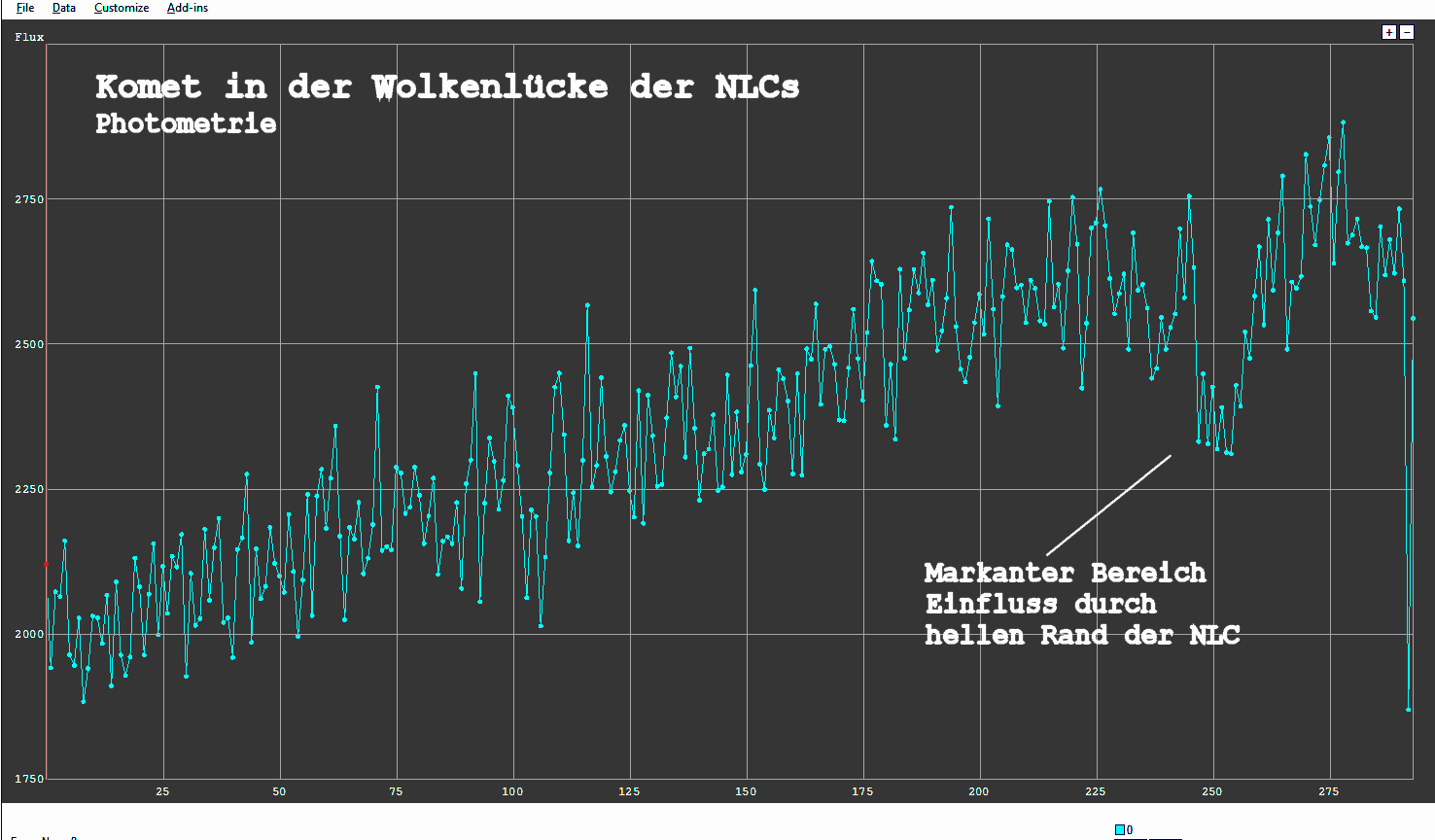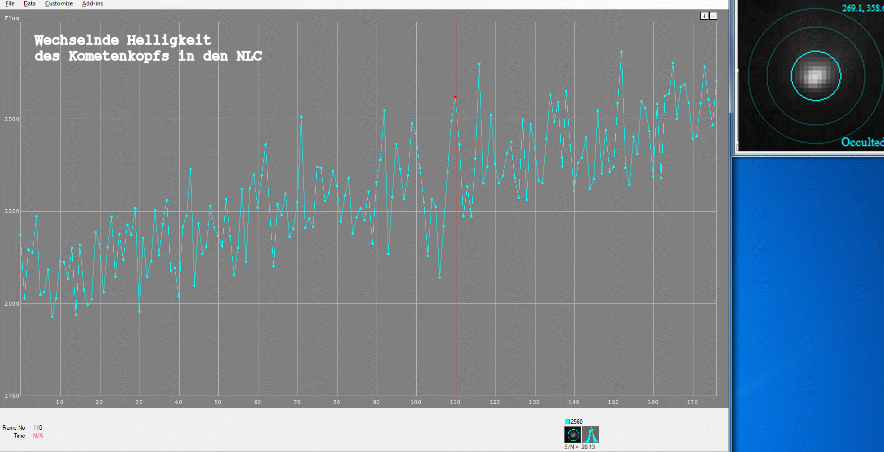 in der folgenden Messung die Helligkeit des Kometen schwankt, ist sie