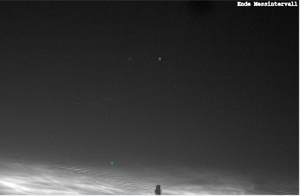 zwischen dem Stern in den unbeleuchteten NLCs und dem oberhalb