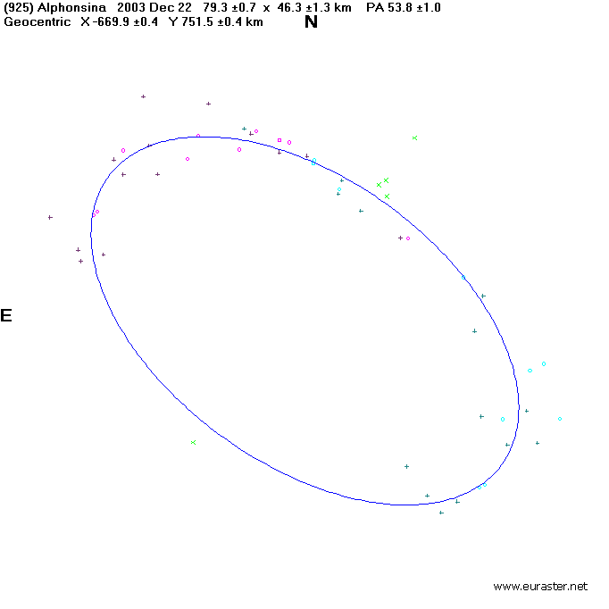 von Eric Frappa ergab eine Schattenellipse mit Achsen von 47,0 und 79,2 km.