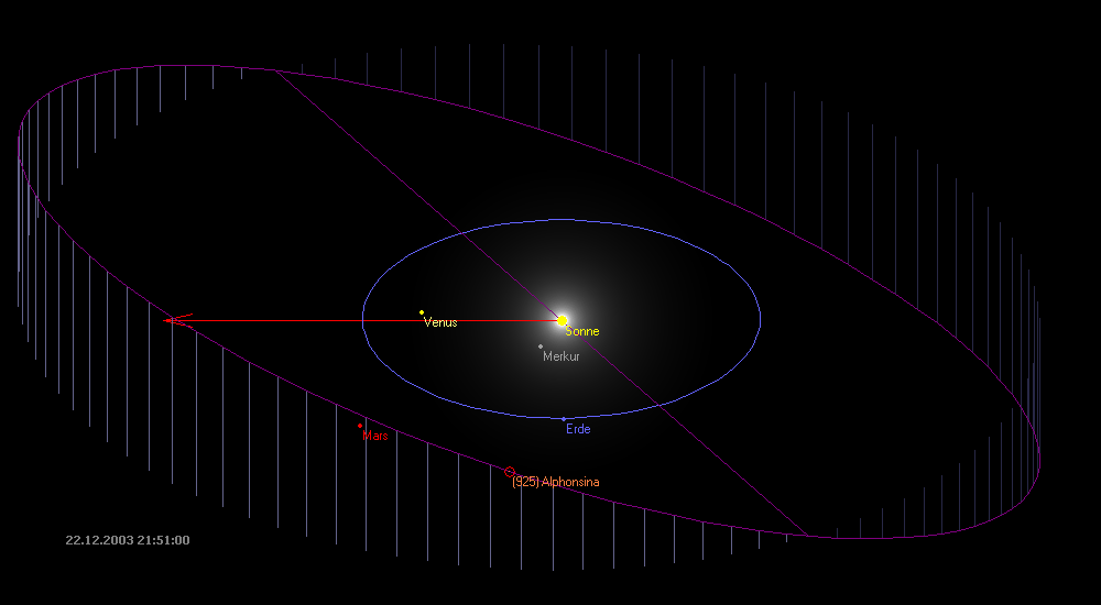 Alphonsina ist ein typischer Hauptgürtelasteroid mit einer Umlaufzeit