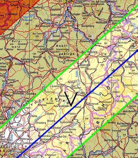 Deutschland in enem etwa 50 km breiten Streifen zwischen Saarbrücken und Berlin