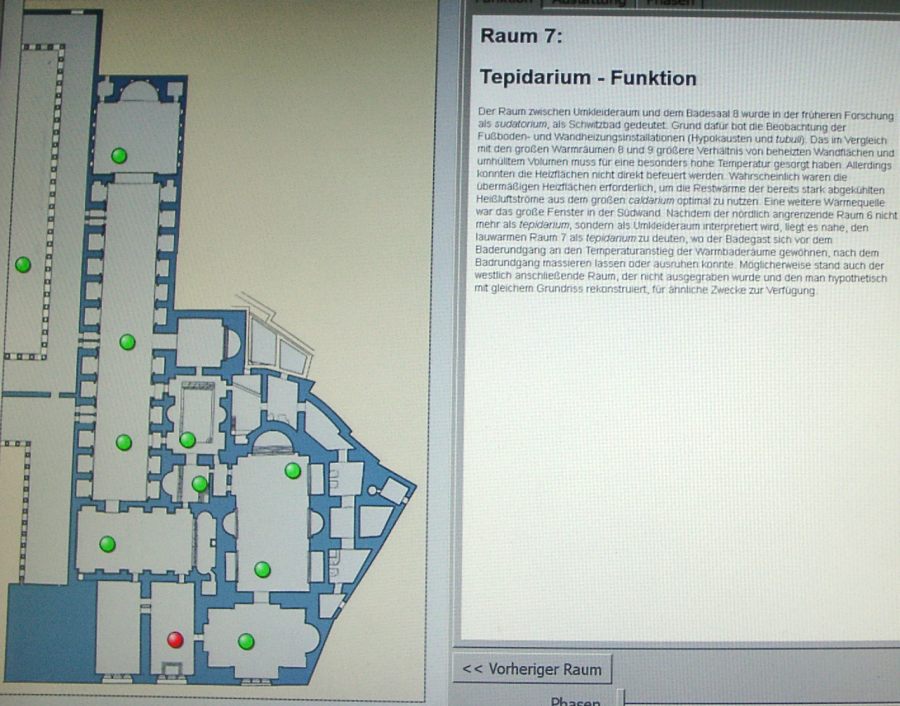Der Umkleideraum soll demnach eine Wandelhalle gewesen sein und der Warmwasserraum die Umkleide.