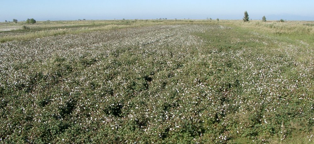 An den Seiten des Flusses gibt es weite Baumwollfelder.