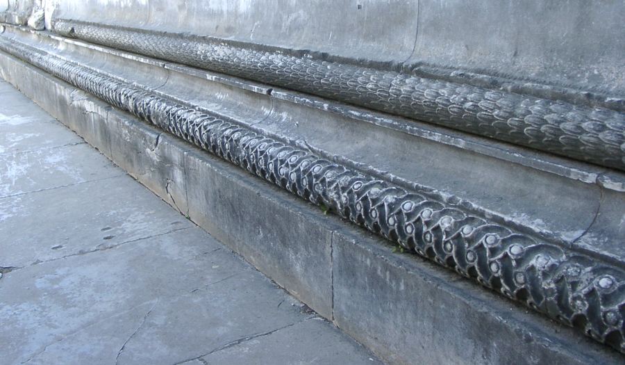 Die verzierten Säulenbasen stammen aus römischer Zeit.