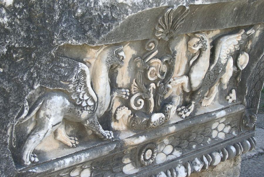 Auf den Pfeilern lagen Kapitelle die mit Greifen verziert waren.