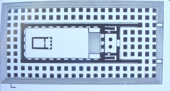 die besterhaltene antike Tempelanlage. Die Säulenbasen und die Wände des Innenraums