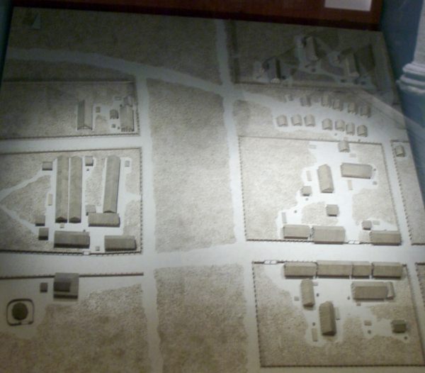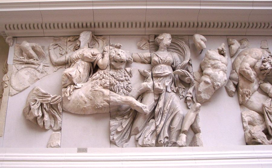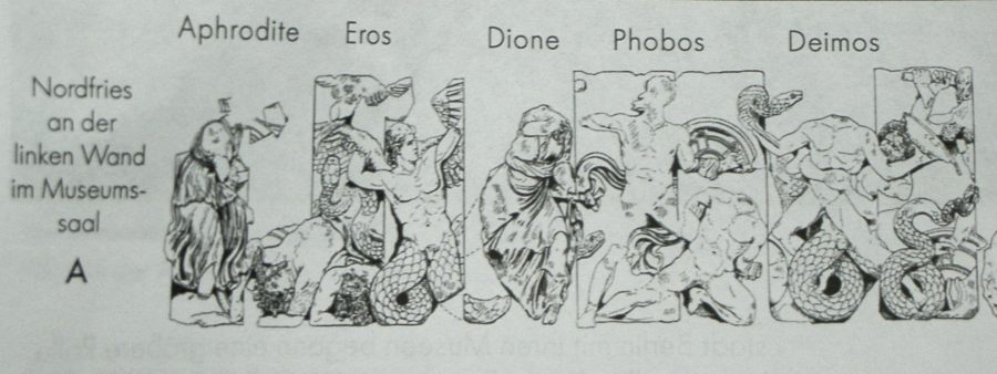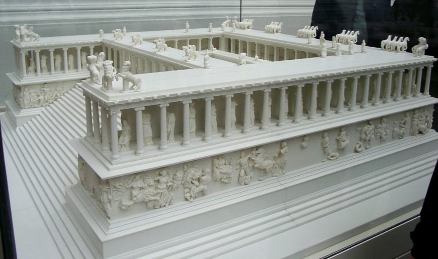 Ein Modell des Pergamonaltars, - man beachte die sitzende Figur in der Ecke.