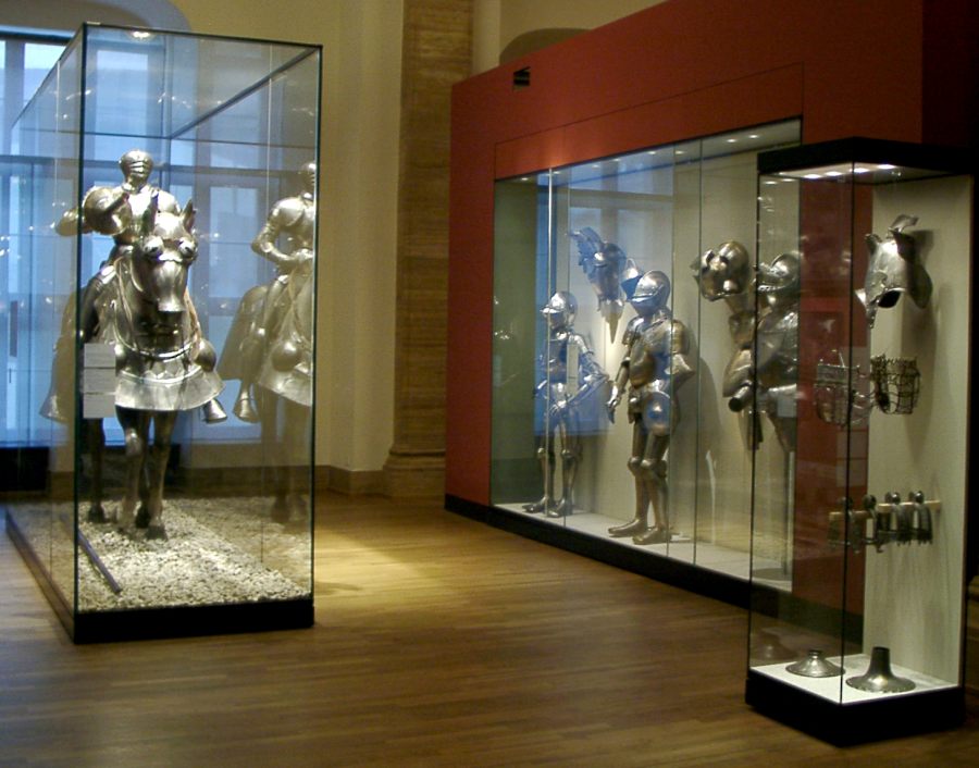 Aus dem Mittelalter ist allerlei Rüstzeug zu sehen. Da wird das Zeughaus