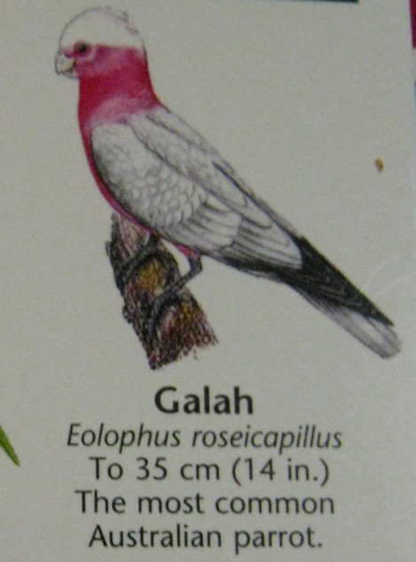 Es handelt sich um einen Galah, den häufigsten australischen Papagei. Er lebt gern gesellig in kleinen Kolonien
