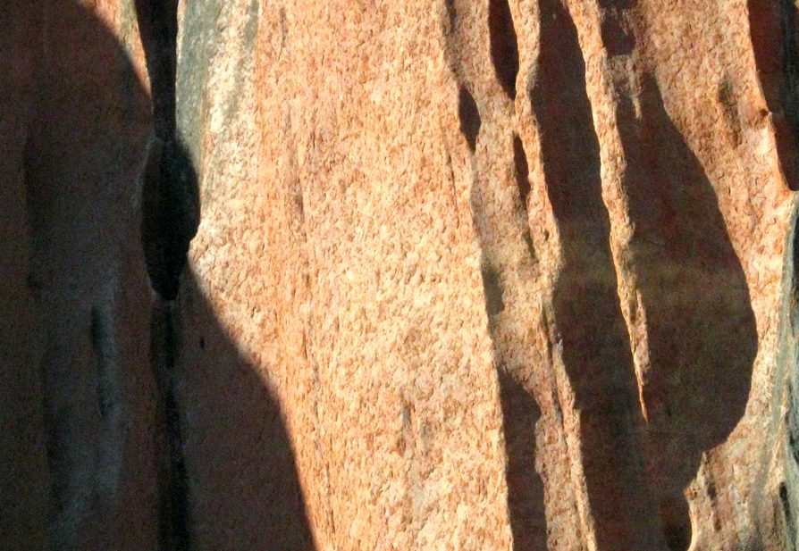 der Felsen glatt. Aus der Nähe sind zahlreiche Abbruchkanten zu sehen.