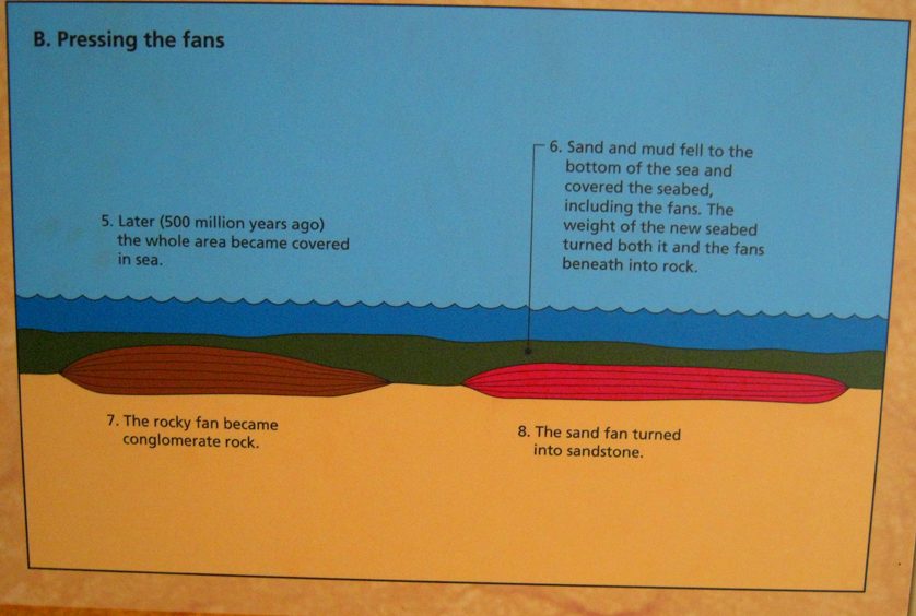 Junge Abbruchkanten zeigen, dass der Fels von innen nicht Rot sondern Grau ist.