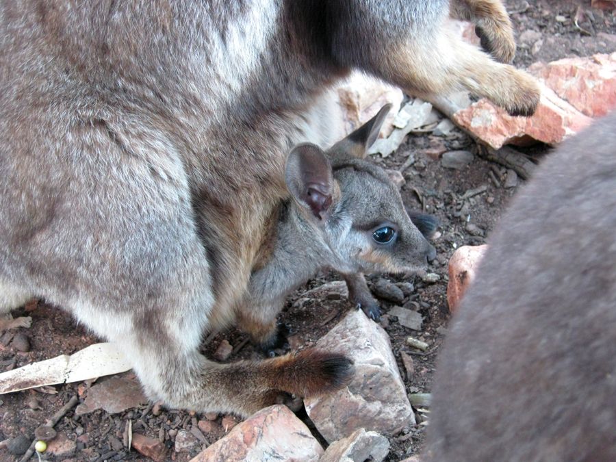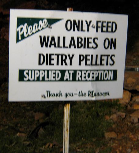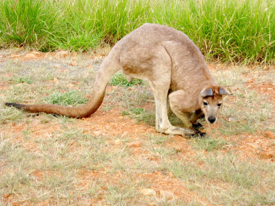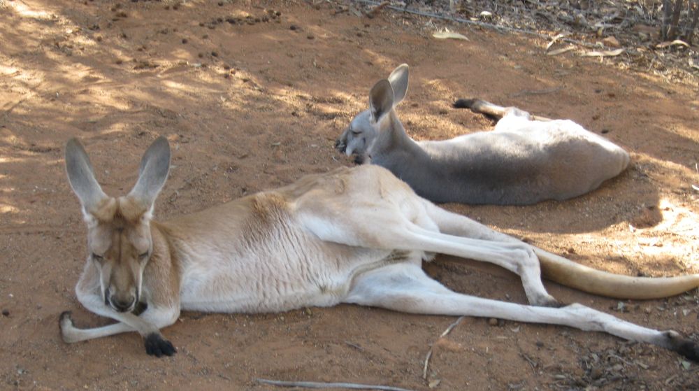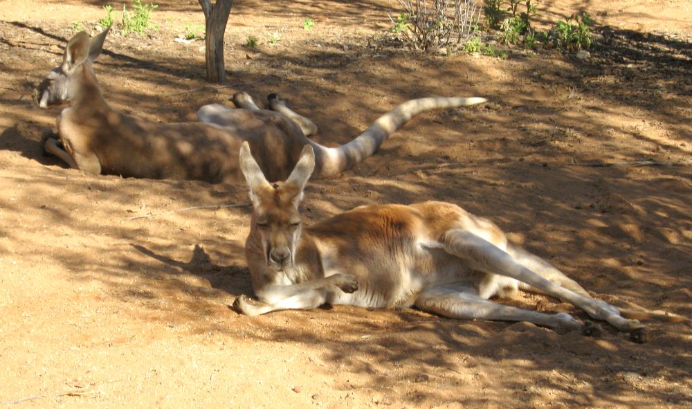 Die kleinen Zwergkänguruhs werden nicht bejagd und sind recht häufig zu sehen. Die roten Riesenkänguruhs stehen auf der Abschussliste und sind eher selten zu finden. Am ehesten findet man sie auf der Speisekarte...