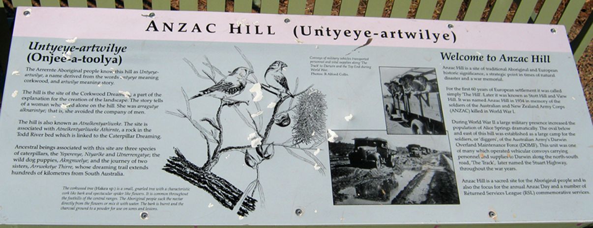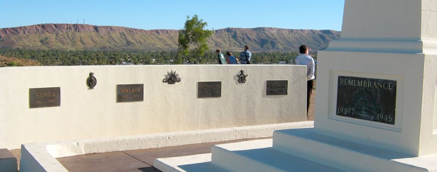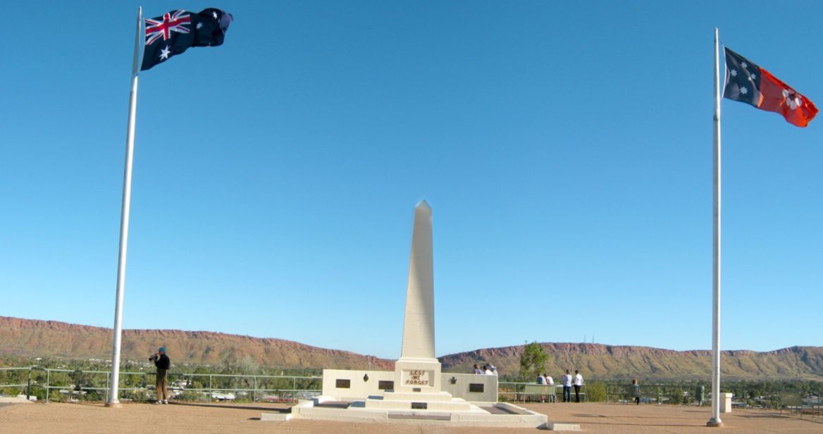 Vom RFDS sind es nur wenige 100m zum ANZAC-Hill. Neben den Fahnen von Australien und Nord-Territorium (mit dem Kreuz des Südens!) und einer schönen Aussicht gibt es dort ein Kriegerdenkmal zu sehen.