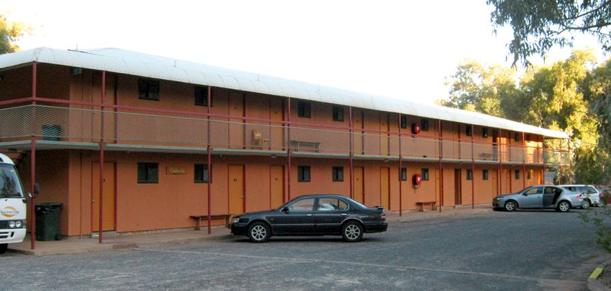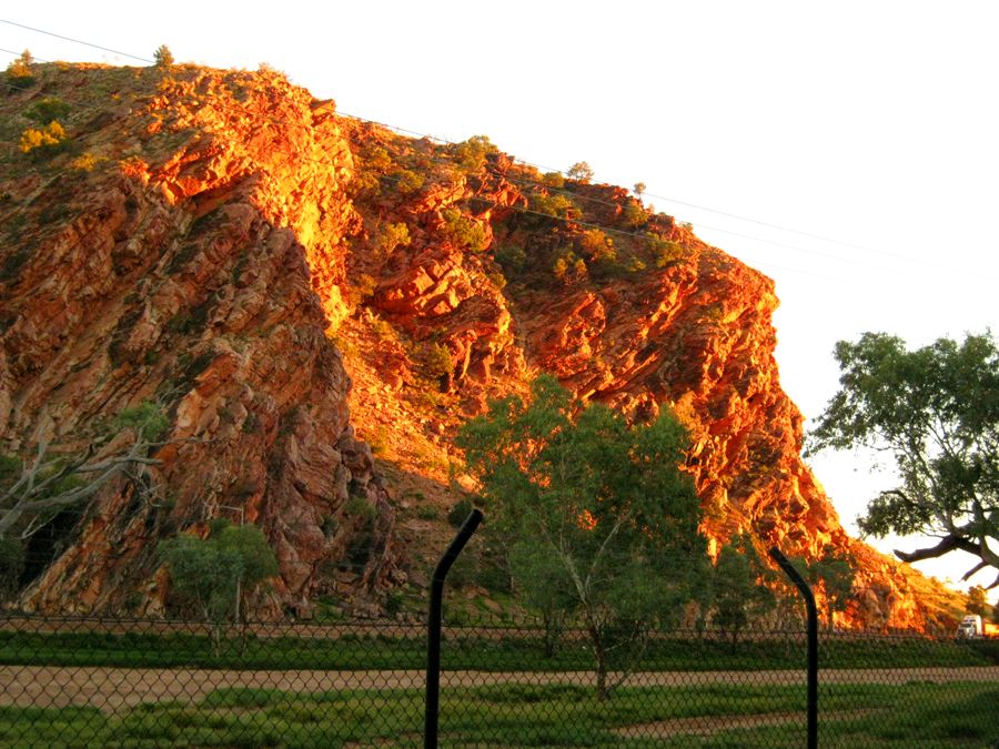 Das Hotel liegt direkt am Durchbruch des meist ausgetrockneten Todd-Rivers durch die MacDonnell-Ranges. Die MacDonnell Ranges sind eine 644 km lange Gebirgskette im Northern Territory Australiens. Sie bestehen aus parallel laufenden Bergkämmen aus rotem Sandstein, die westlich und östlich von Alice Springs verlaufen. Mount Liebig mit 1.524 m und Mount Zeil mit 1.510 m sind die höchsten Erhebungen. Die Schluchten (Gaps) dieses Gebirges waren ein wichtiges Ausflugsziel in den nächsten Tagen.