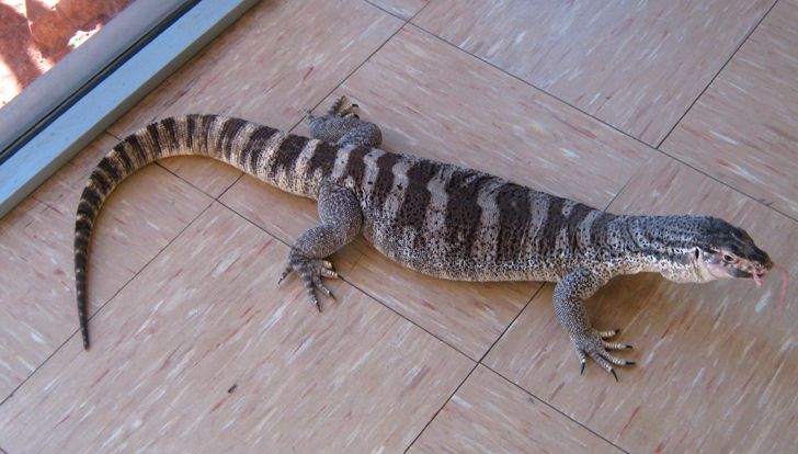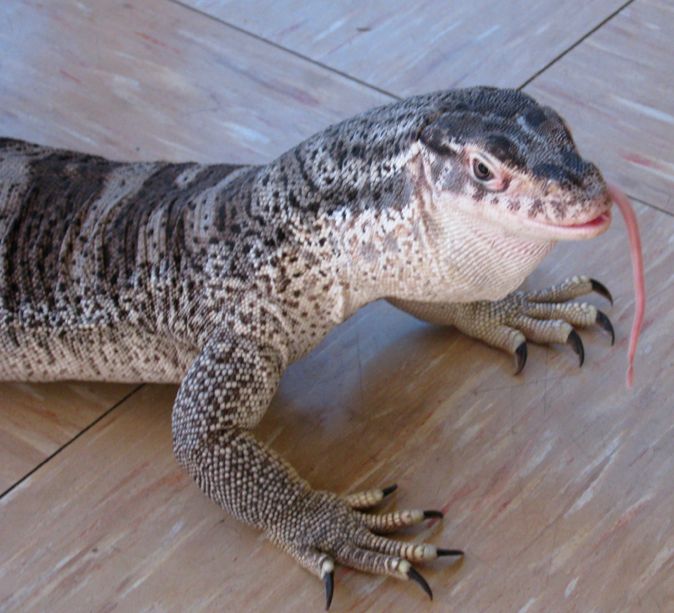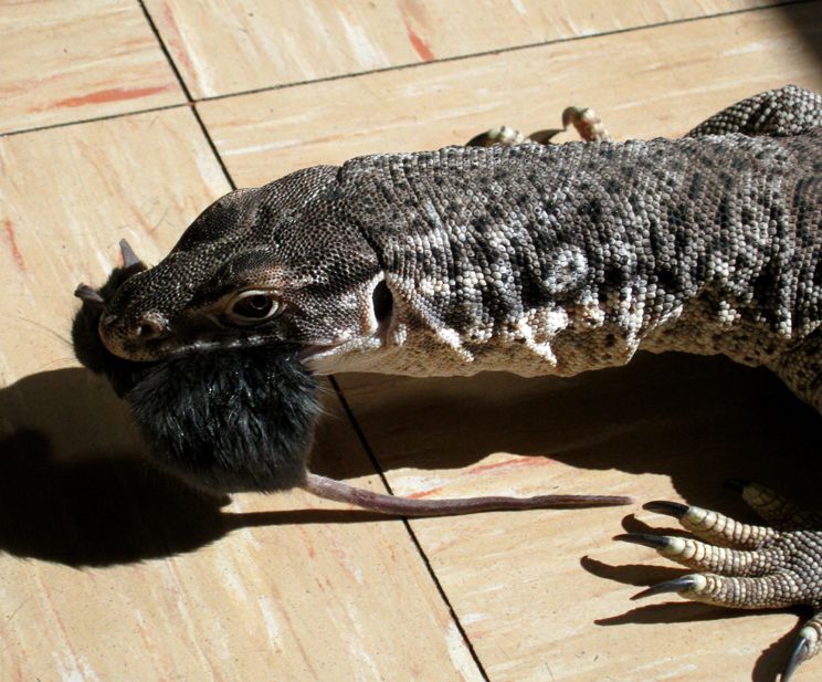 Ein großer, frei laufender Waran bekam auch eine Maus ab.