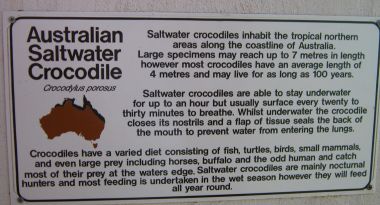 Australiens größte Eidechse und gefährlichstes Reptil ist das Salzwasserkrokodil. Mit ihm gibt es gelegentlich tödliche Unfälle.