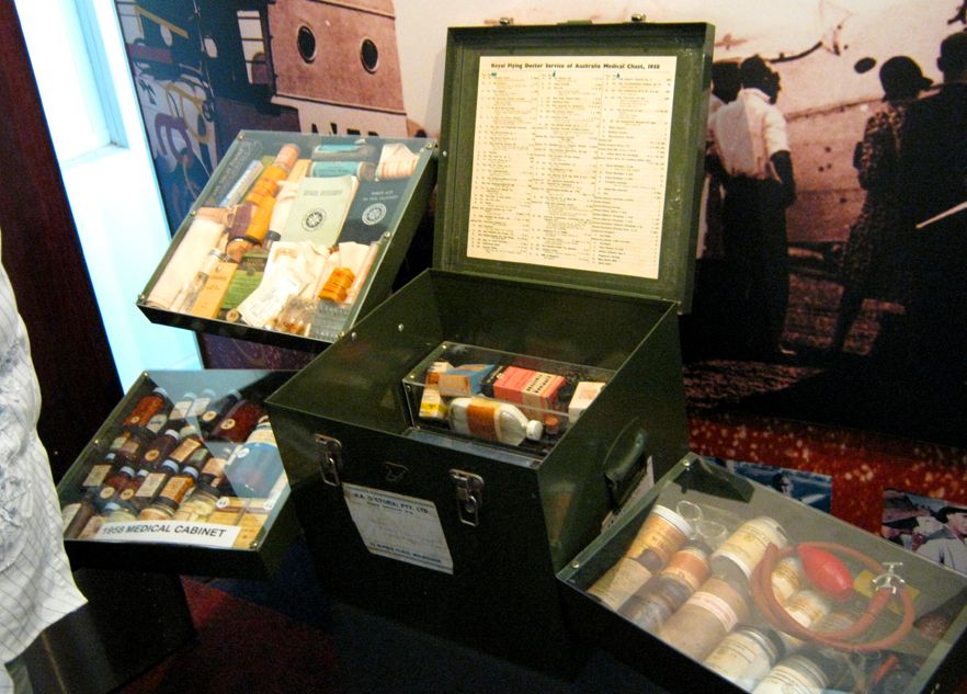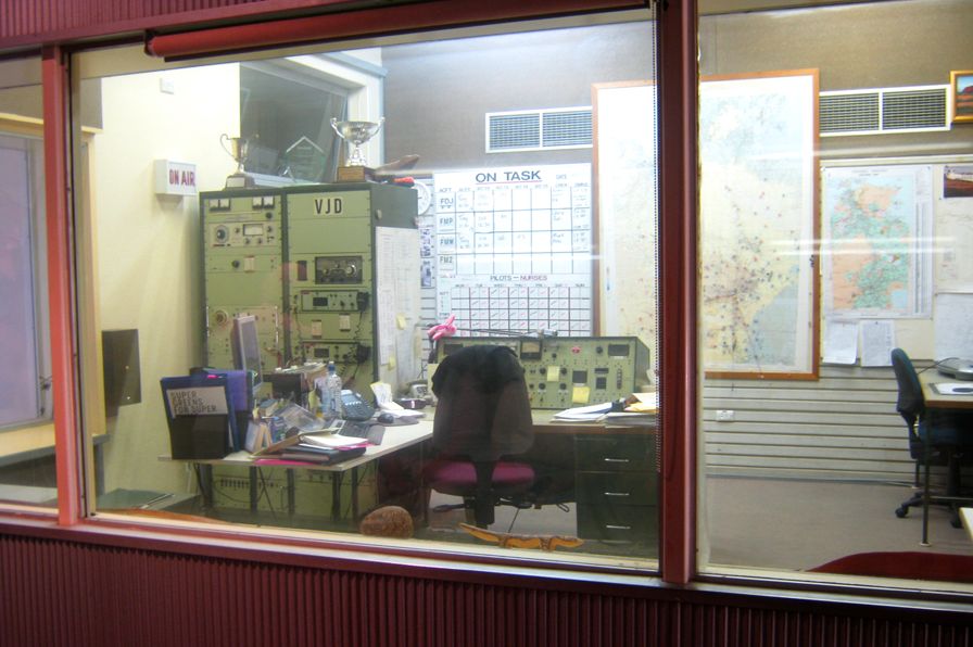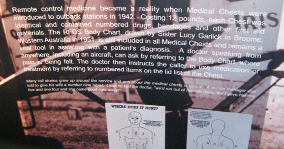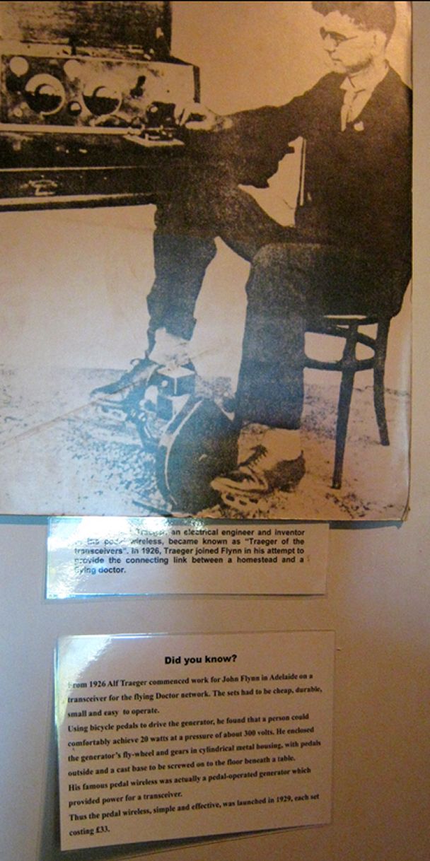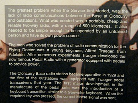...und die ersten pedalbetriebenen Funkgeräte zu sehen. Diese Pedalfunkgeräte waren die Basis des Flugservice, denn bis vor wenigen Jahren gab es im Outback keinen Strom.