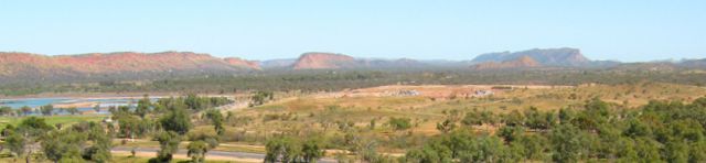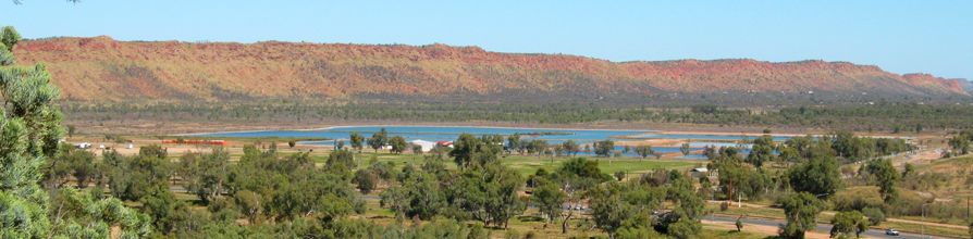 Am Horizont der Heavytree Gap als Durchbruch des Todd-Rivers und Wasseraufbereitungsanlagen