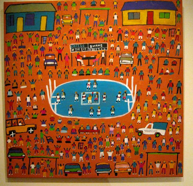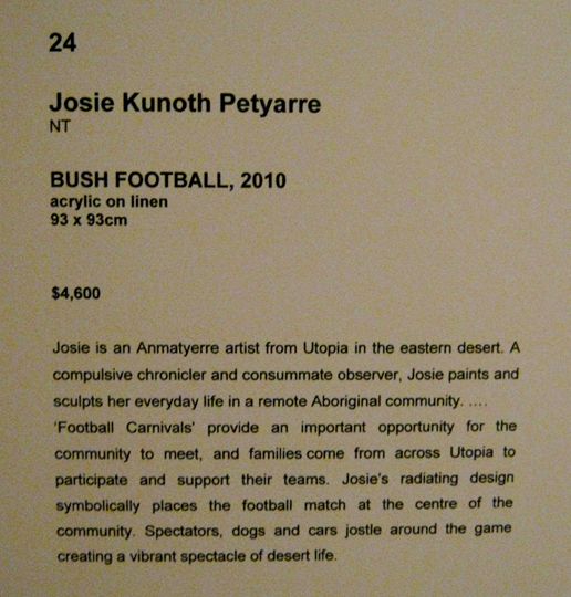 Die Kunst der Aborigines bedient sich noch heute der Formensprache die wir bei den Felszeichnungen am Uluru gesehen haben. Kunst ist eine wichtige Einnahmequelle und einige Künstler erlangten internationales Rennomee. Bis in die 60er Jahre hatten die Eingeborenen keine Bürgerrechte. Aus der Künstlerszene kam der Ruf nach Gleichberechtigung.