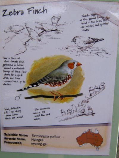 Zu den häufigsten Vogelarten gehört der auch bei uns bekannte Zebrafink. Auch der Wellensittich ist ein Australier. Wir haben später noch einen Schwarm aus einigen Hundert Tieren gesehen.