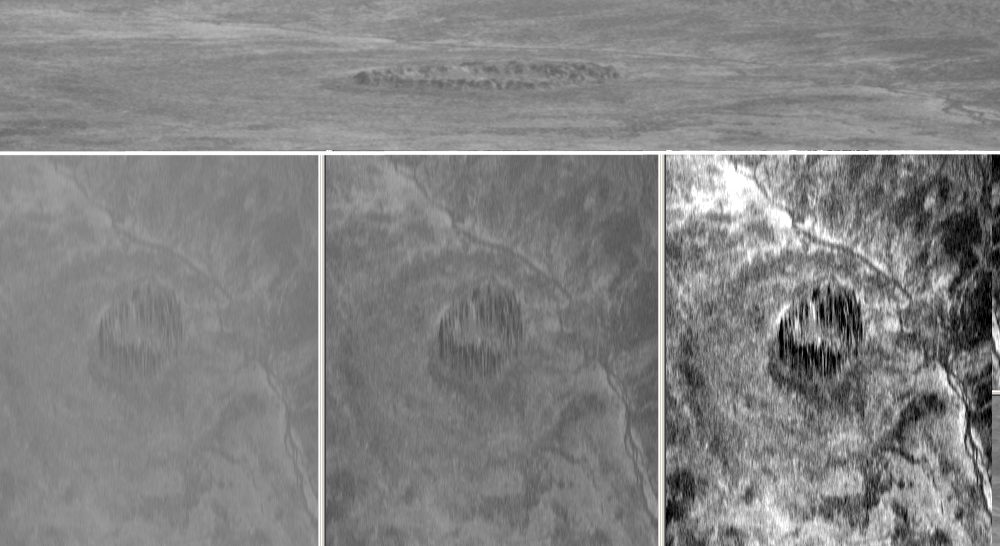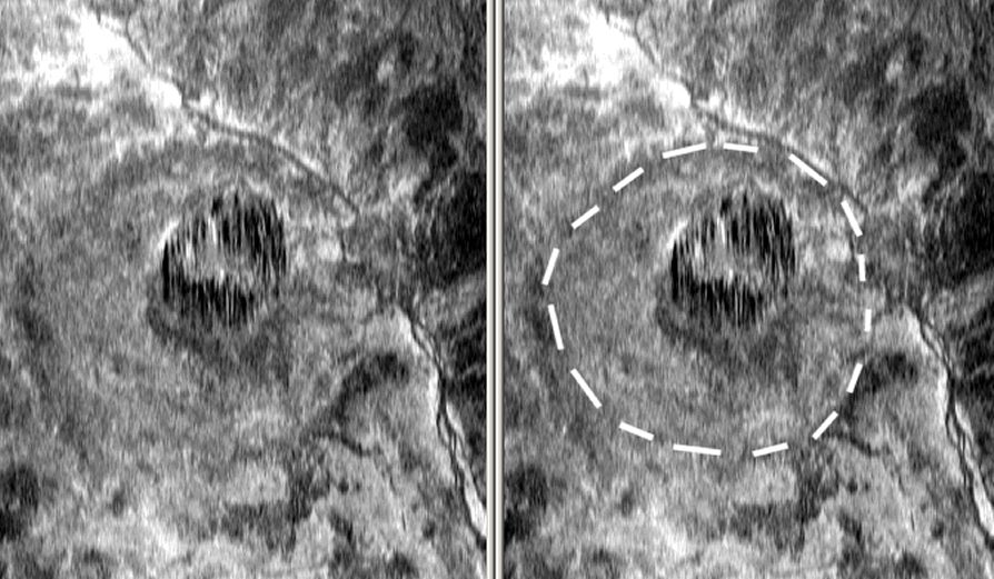 Es war interessant die Luftbilder auszuwerten. Der am Boden nicht erkennbare äußere Ring ließ sich noch sichtbar machen.