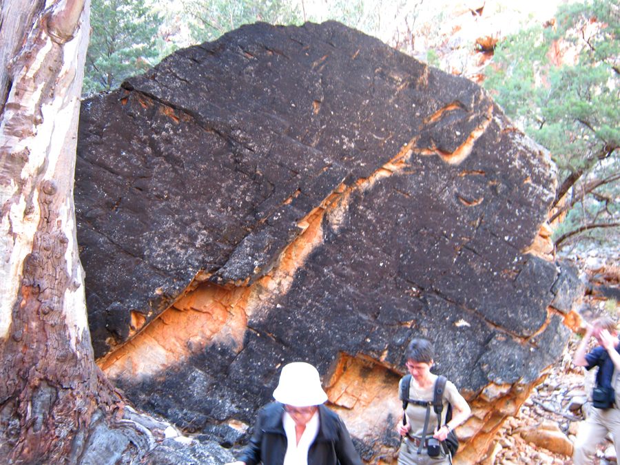 Viele Steine hatten eine schwarze Oberfläche. Das ist eine Folge der Buschfeuer